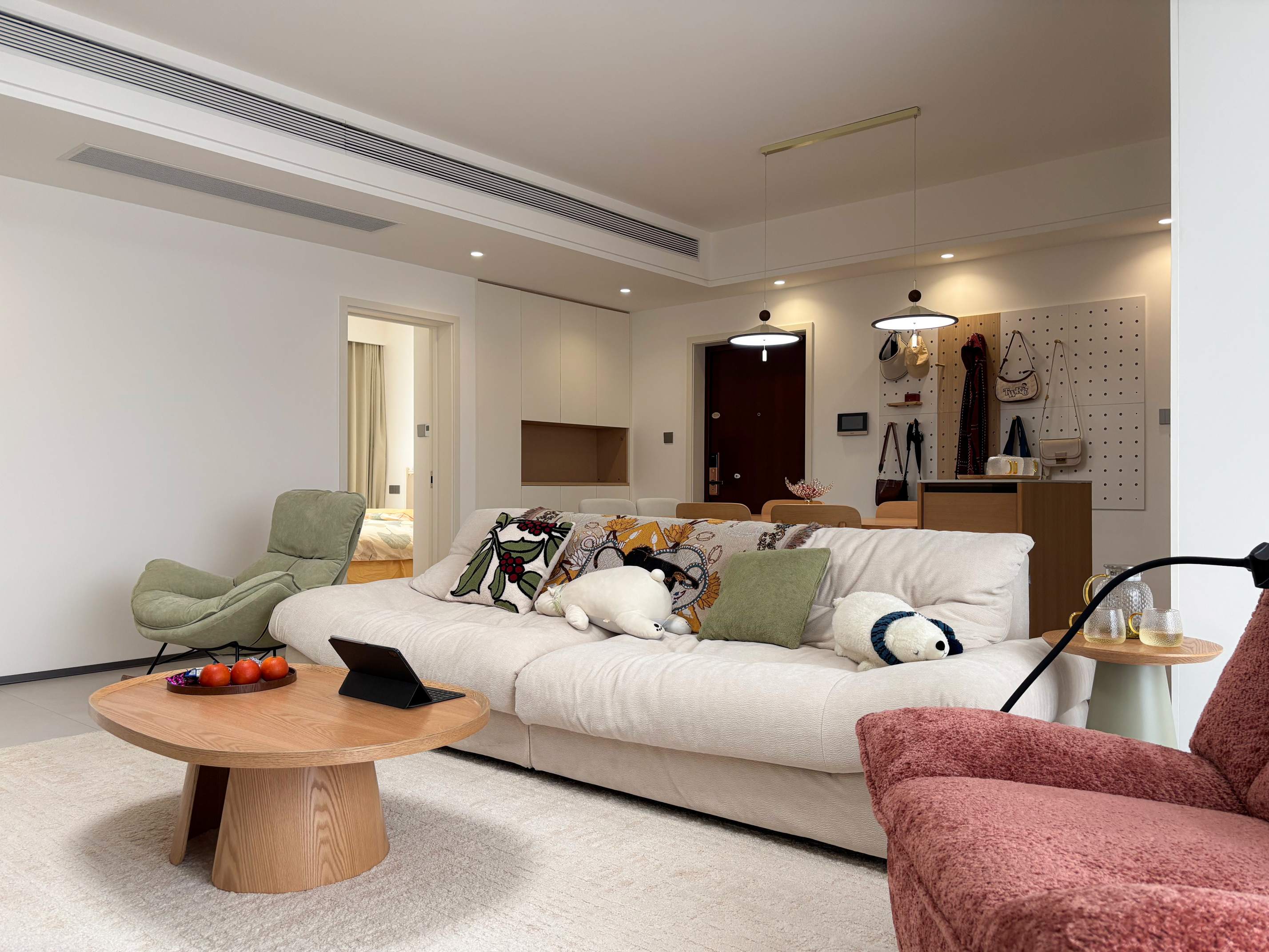 奶油风的线条要以圆润、简约为主,减少视觉压迫感。家具可以选择圆角设计,比如弧形沙发、圆形餐桌,避免棱角分明的款式;吊顶做平顶或简单的双眼皮吊顶即可,不做复杂欧式雕花或多层叠级;颜色尽量与墙面接近,弱化边界感,让空间更加通透。